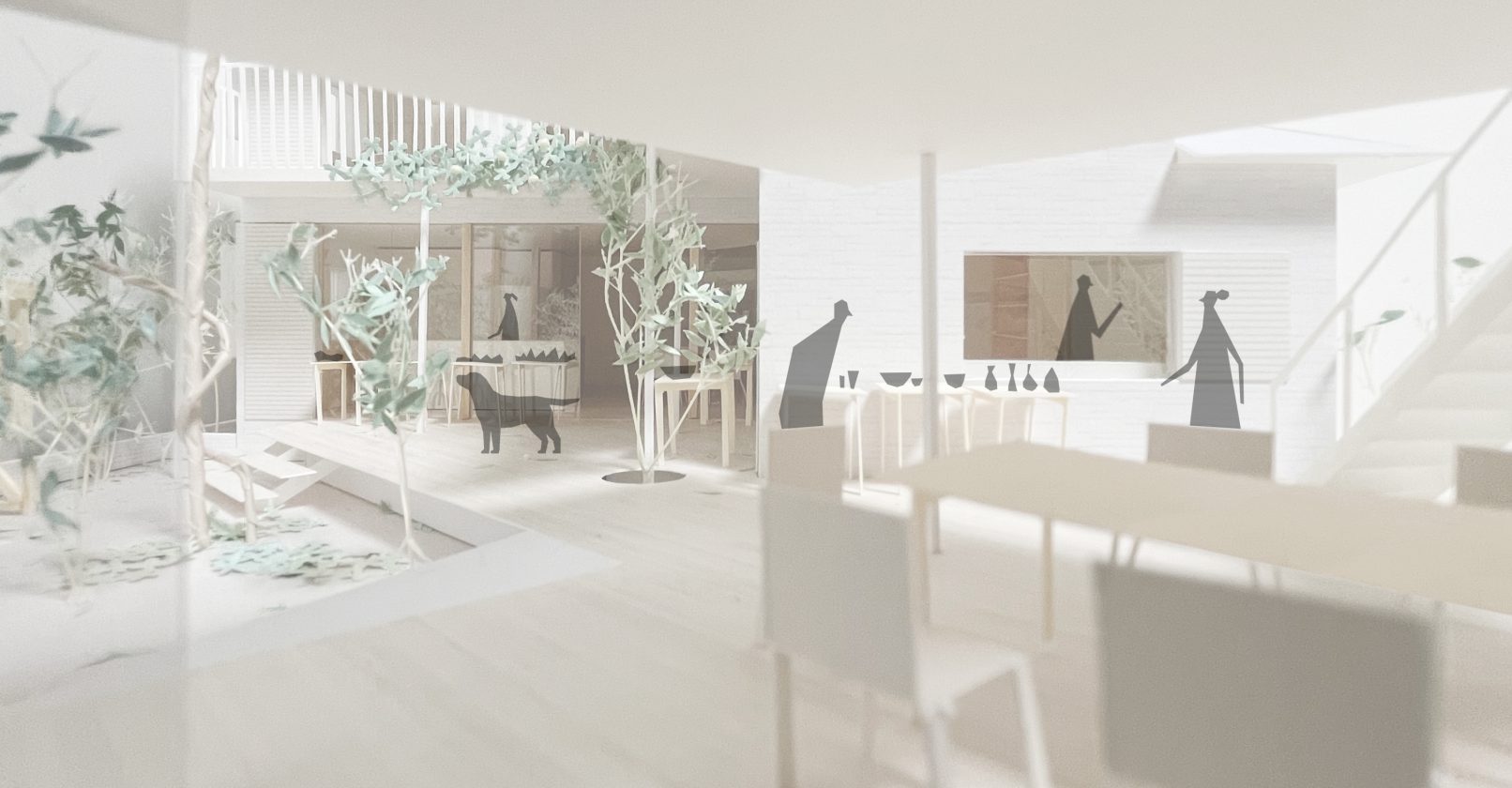 Based on the concept of the competition, “a generous house that you’ll want to stop by,” and on the activities at ichi and the actual site, we felt that “an architecture that preserves and expands the current atmosphere” would be more suitable for this location, rather than a completely new arrangement. Therefore, we considered the appropriate size of the building in relation to the garden, so as not to destroy the atmosphere of the current garden too much. Although compact, the building can be used in a variety of ways. The design of the house is intended to be functional and to age well, so that it will be able to accommodate the aging of the family, changes in ichi’s activities, and the passage of time over the long term.